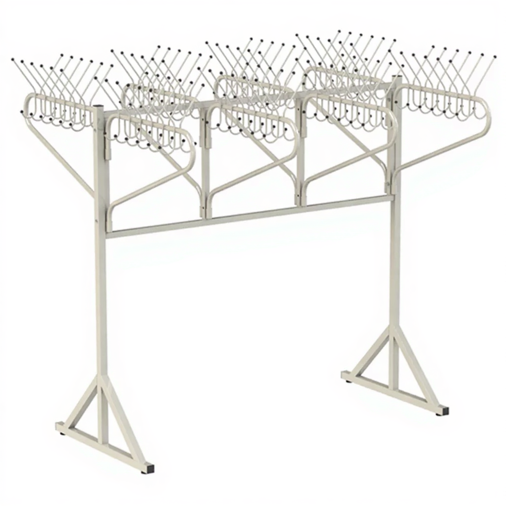 Вешалка напольная поворотная 4СТ — это надежное и функциональное решение для оборудования гардеробных зон в учебных заведениях, медицинских учреждениях, офисных и административных помещениях. Поворотная конструкция обеспечивает удобный доступ к одежде и экономит пространство.