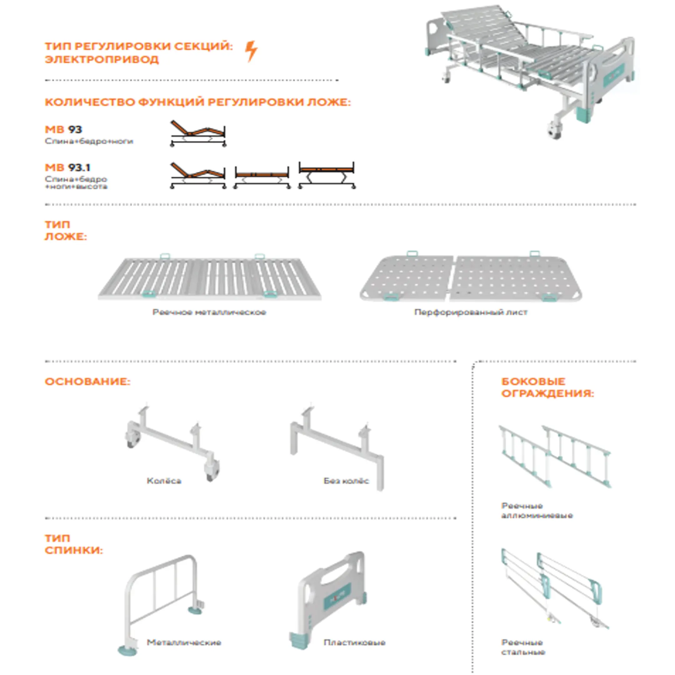 Кровать медицинская MB-93.1 (электропривод) с дополнительными опциями