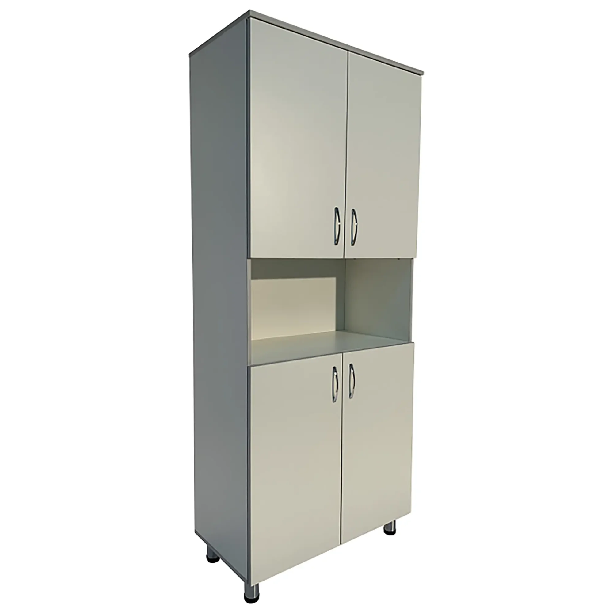 • Ниша шкафа разделена на отделения, что помогает эффективно организовать хранение и быстро находить необходимые материалы.