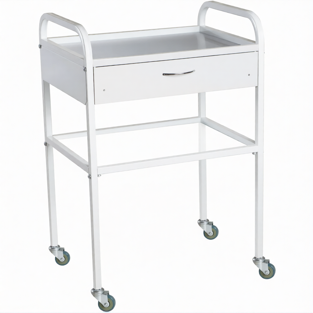 Столик медицинский инструментальный СМИ-02-01 (полки металл + стекло, колёса пластик) предназначен для размещения инструмента, лекарственных препаратов и приборов.