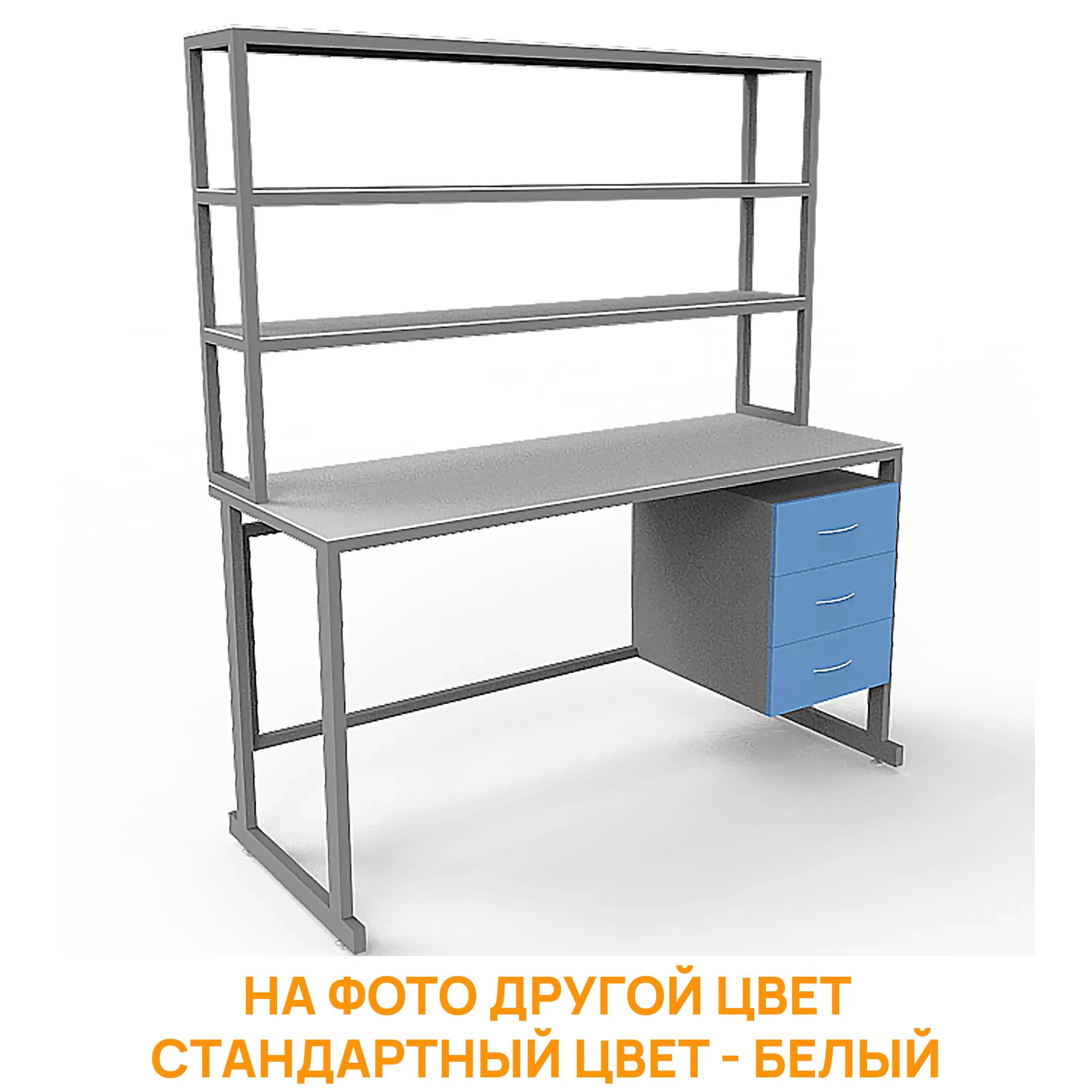 - Функциональная надстройка — три полки для дополнительного размещения оборудования, общая высота стола с надстройкой 1850 мм.