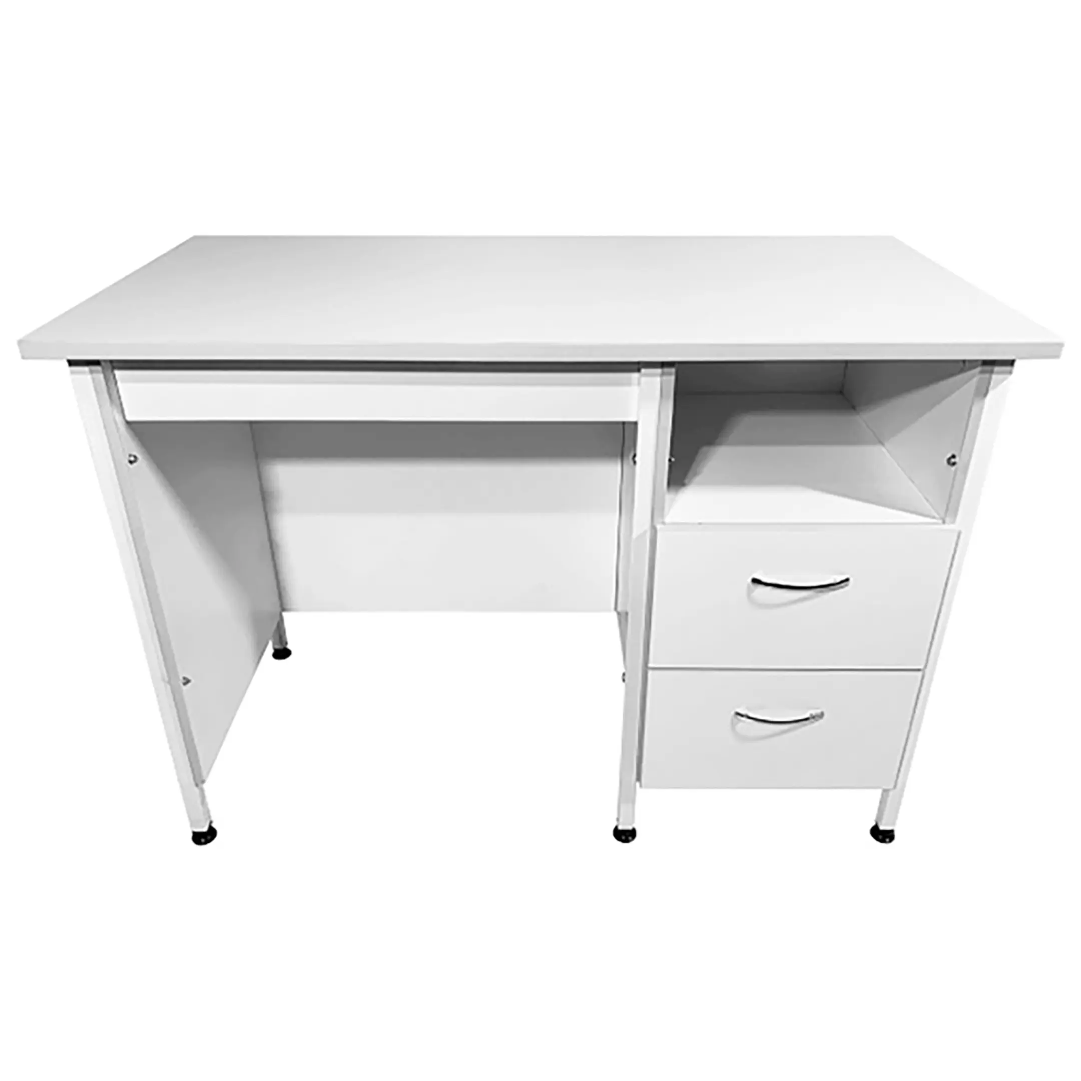 Стол лабораторный СЛ 12.012 (белый) — это идеальное решение для создания эффективного рабочего пространства сотрудников в лабораториях и медицинских учреждениях. Модель оснащена тумбой с вместительной верхней нишей и двумя выдвижными ящиками. Каркас выполнен из стального профиля, столешница из ЛДСП толщиной 22 мм.