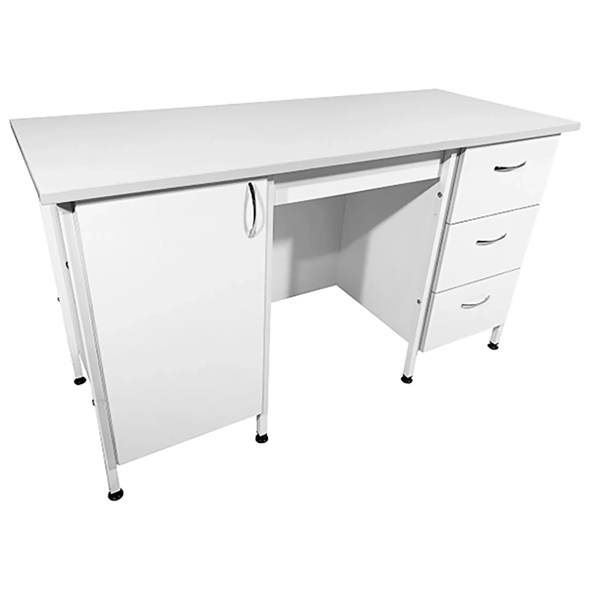Стол лабораторный СЛ 12.016 (белый) идеально подойдет для организации рабочего пространства сотрудников в лабораториях и медицинских учреждениях. Модель оснащена тумбами с выдвижными ящиками и распашной дверкой. Каркас выполнен из стального профиля, столешница из ЛДСП толщиной 22 мм.