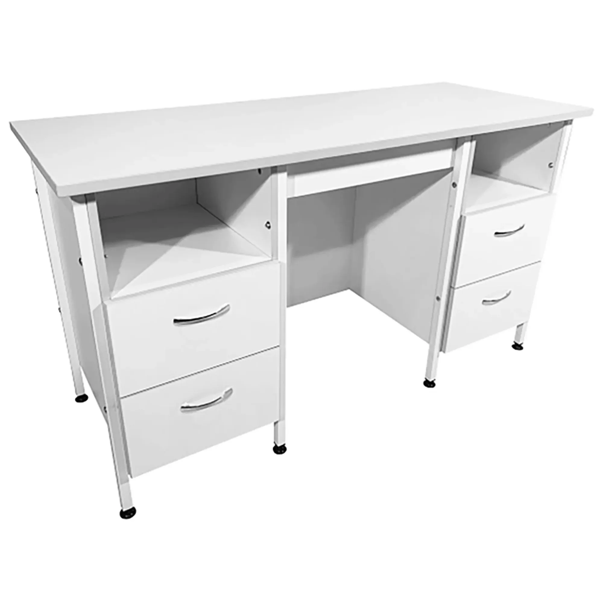 Стол лабораторный СЛ 12.018 (белый) является идеальным выбором для создания эффективного и функционального рабочего пространства сотрудников в лабораториях и медицинских учреждениях. Модель оснащена двумя тумбами с открытыми нишами сверху и выдвижными ящиками снизу. Каркас выполнен из стального профиля, столешница из ЛДСП толщиной 22 мм.