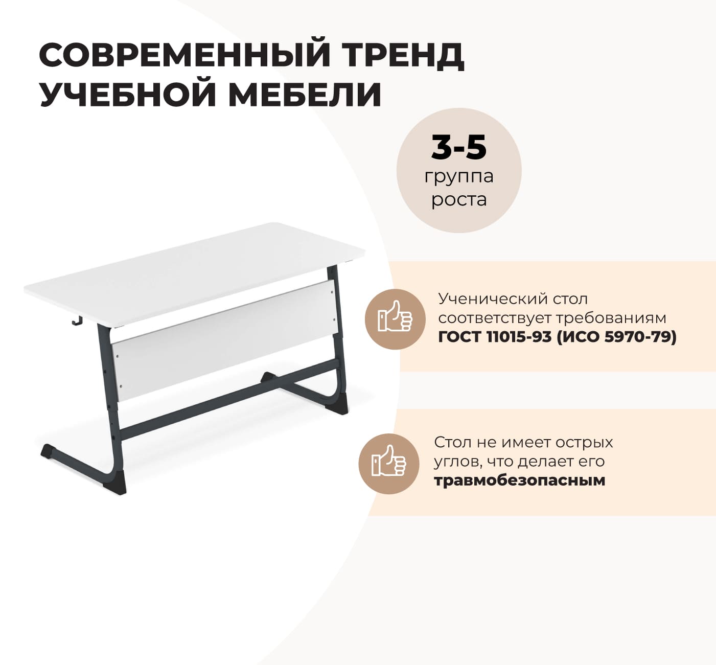 Стол ученический белый снег/черный муар SHT-TN11/3-5 — это современное эргономичное решение для организации учебного пространства учащихся 3-5 ростовых групп. Модель сочетает элегантное цветовое решение "белый снег/черный муар" с функциональной конструкцией, создавая комфортные условия для продуктивных занятий.