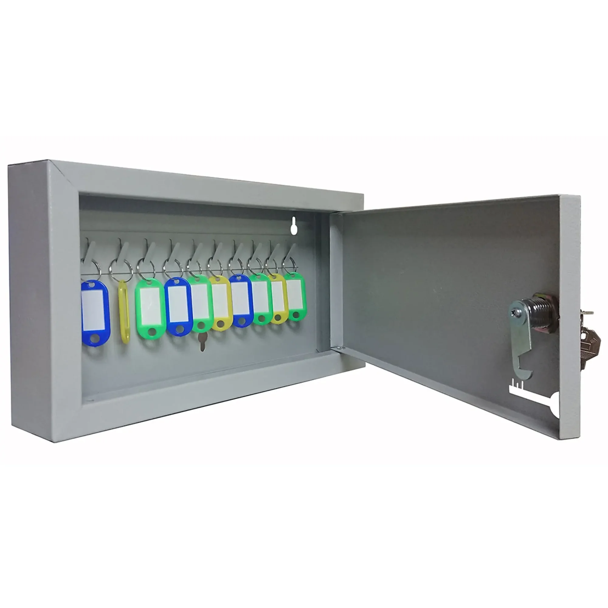 - Защита от случайных потерь и беспорядка — прочный металлический корпус с замком обеспечивает защиту ключей от случайного падения, потери или несанкционированного доступа посторонних лиц. Это простой способ навести порядок и обезопасить ключи от наиболее важных замков.