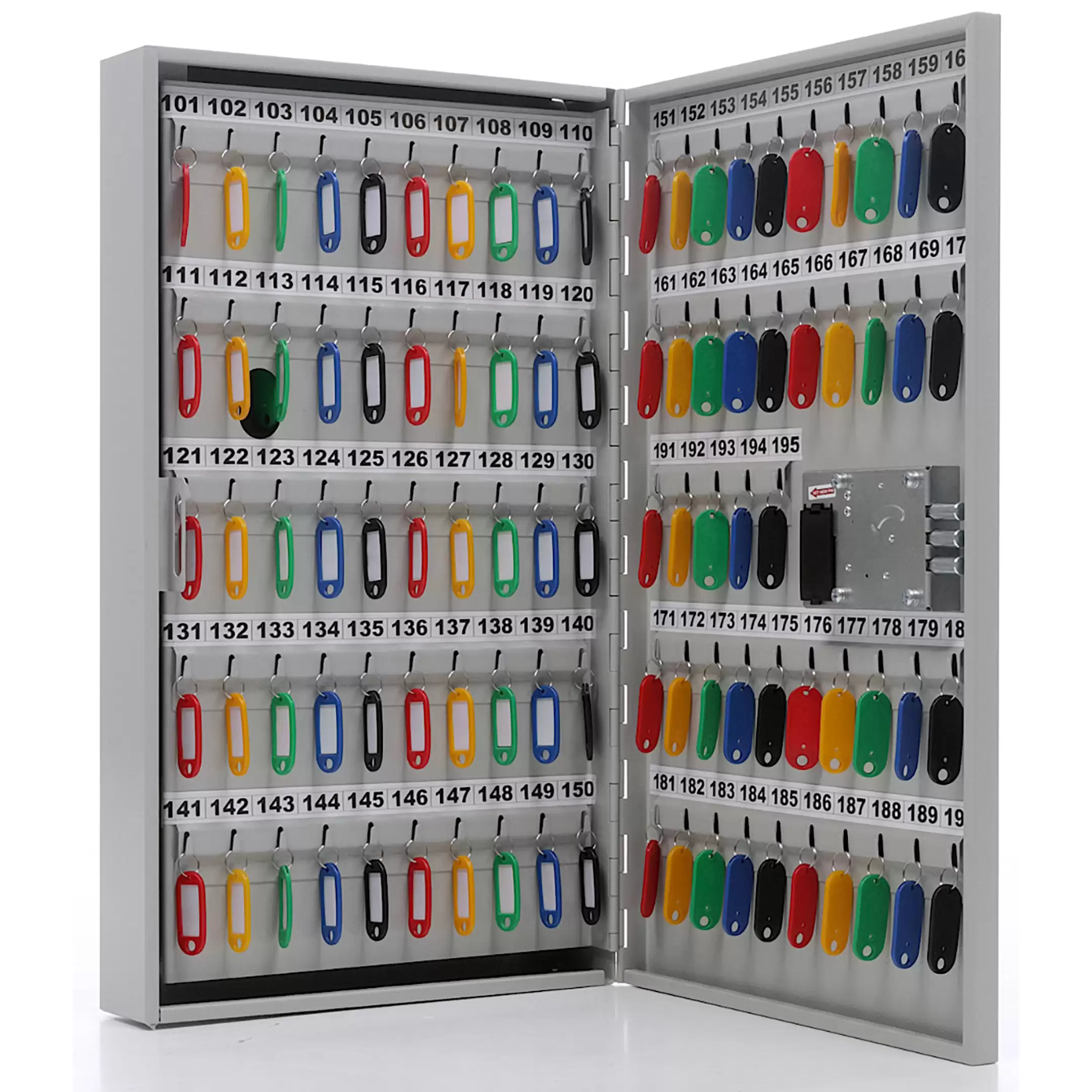 Ключница KEY-195EL (с брелками) — это современная и электронная система для высокоорганизованного и безопасного хранения ключей с функцией контроля доступа и учета. Модель KEY-195EL отличается наличием электронного замка, программируемым управлением и комплектацией брелками, что позволяет не только физически систематизировать ключи, но и вести электронный журнал их выдачи и возврата. Ключница предназначена для объектов с повышенными требованиями к безопасности и подотчетности, таких как банковские учреждения, серверные, лаборатории или зоны ограниченного доступа.