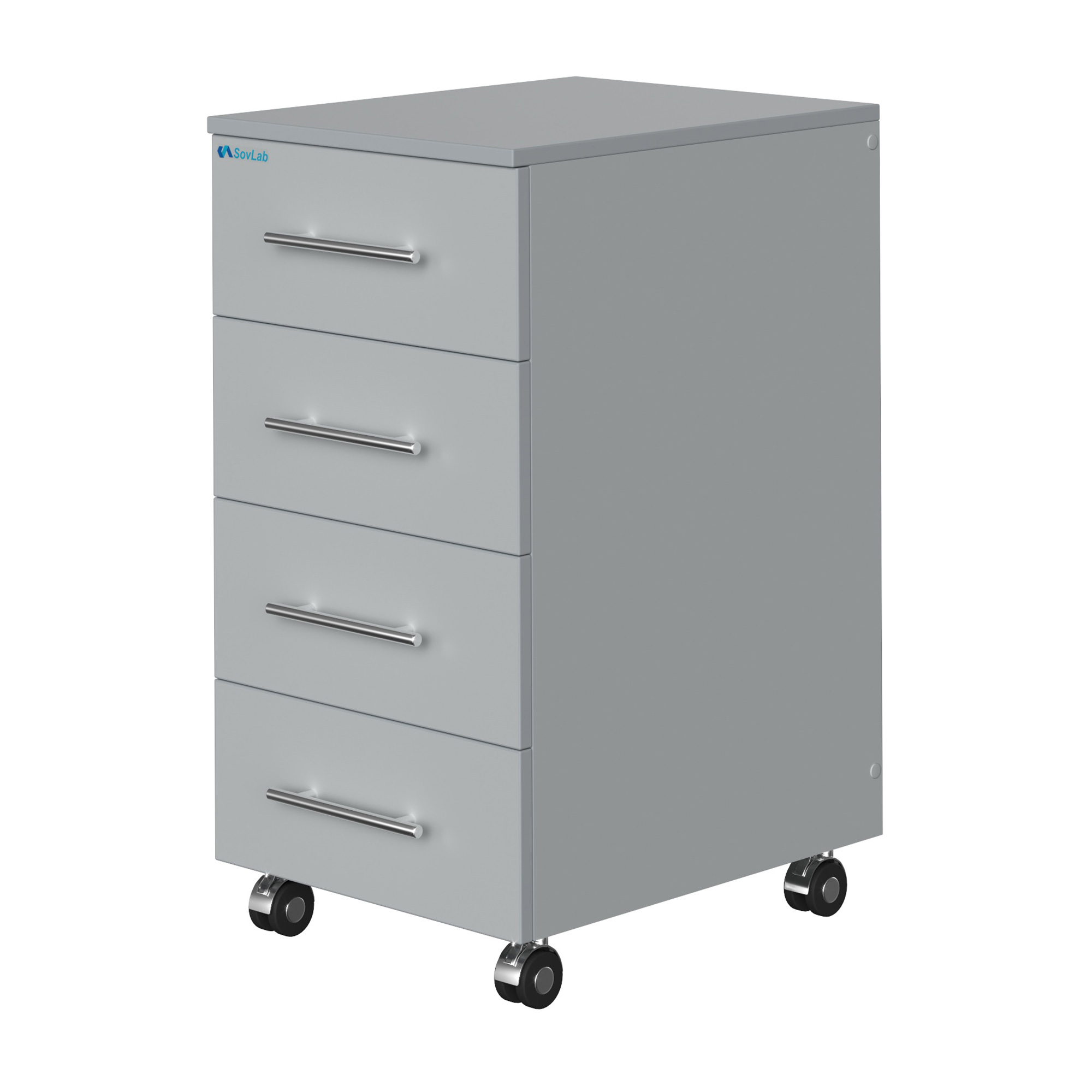 Тумба подкатная высокая с 4 выдвижными ящиками Mod. 400-4-ТЯв — это мобильное лабораторное оборудование, предназначенное для хранения лабораторного оборудования, инструментов, расходных материалов, химических реактивов, документов и мелкого инвентаря. Модель используется для дополнительной комплектации лабораторных столов или как отдельный элемент мебели для хранения. Тумба оснащена четырьмя выдвижными ящиками на телескопических направляющих полного выдвижения и колесными опорами для удобного перемещения.