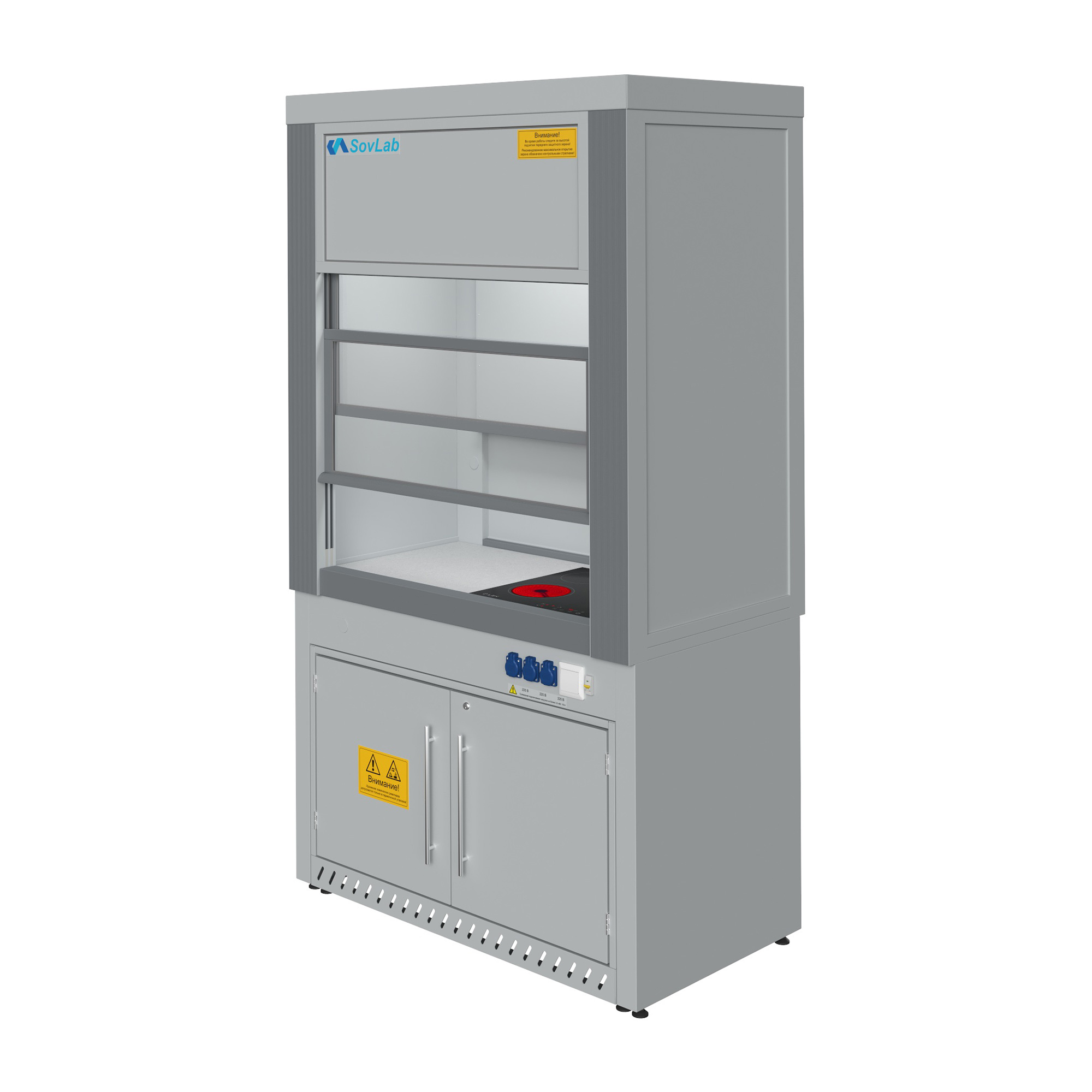 Шкаф вытяжной с нагревательной поверхностью Моd. 1200 ШВНП — это специализированное лабораторное оборудование, предназначенное для безопасной работы с кислотами и агрессивными реактивами, требующими нагрева или термической обработки. Модель оснащена встроенной стеклокерамической нагревательной поверхностью, установленной заподлицо в рабочую столешницу. Конструкция обеспечивает надежную защиту персонала при работе с летучими, токсичными и химически активными соединениями в условиях высоких температур.