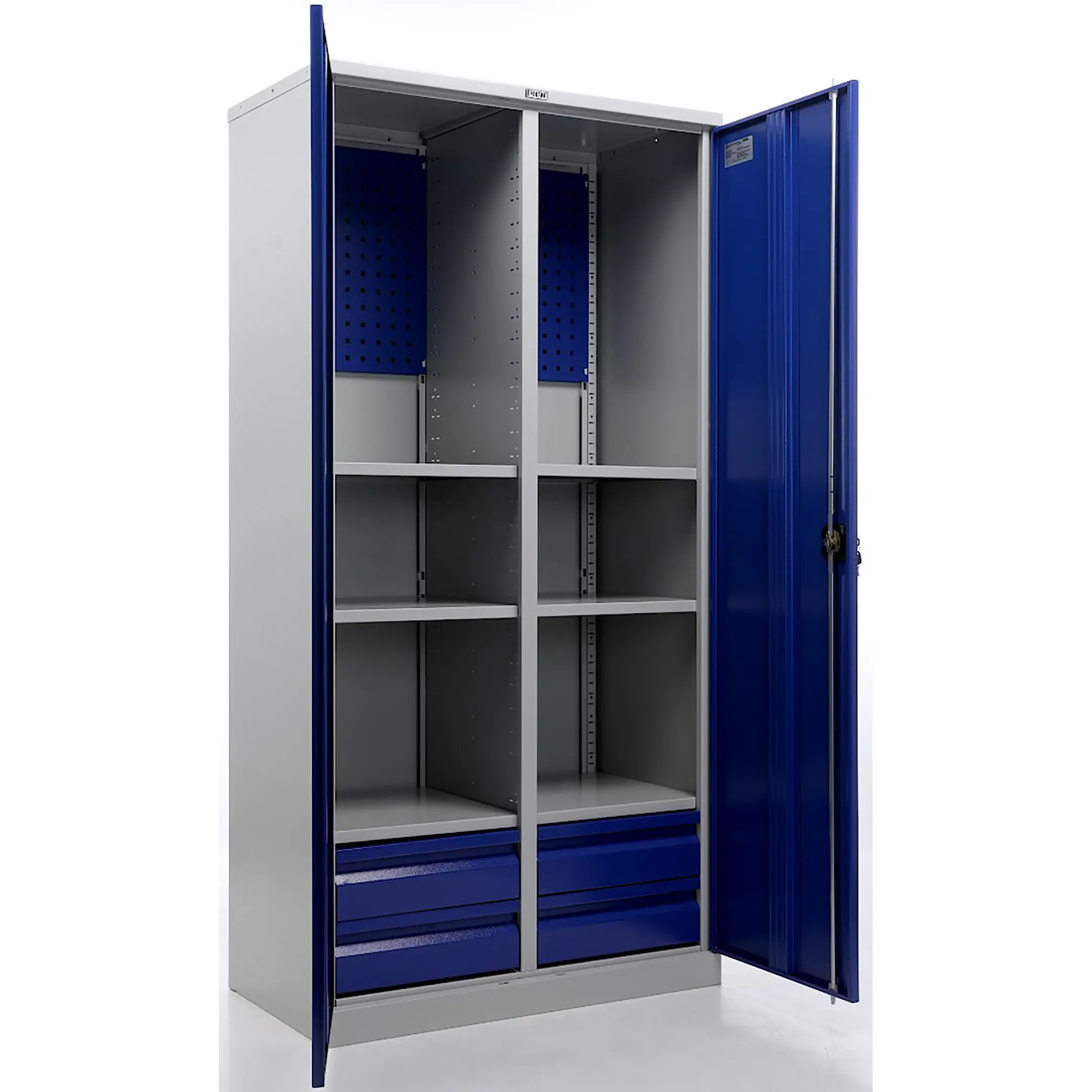 - Промышленная прочность и износостойкость — шкаф изготовлен из качественной стали с прочным порошковым покрытием, устойчивым к ударам, царапинам, воздействию масел, технических жидкостей и интенсивной эксплуатации.