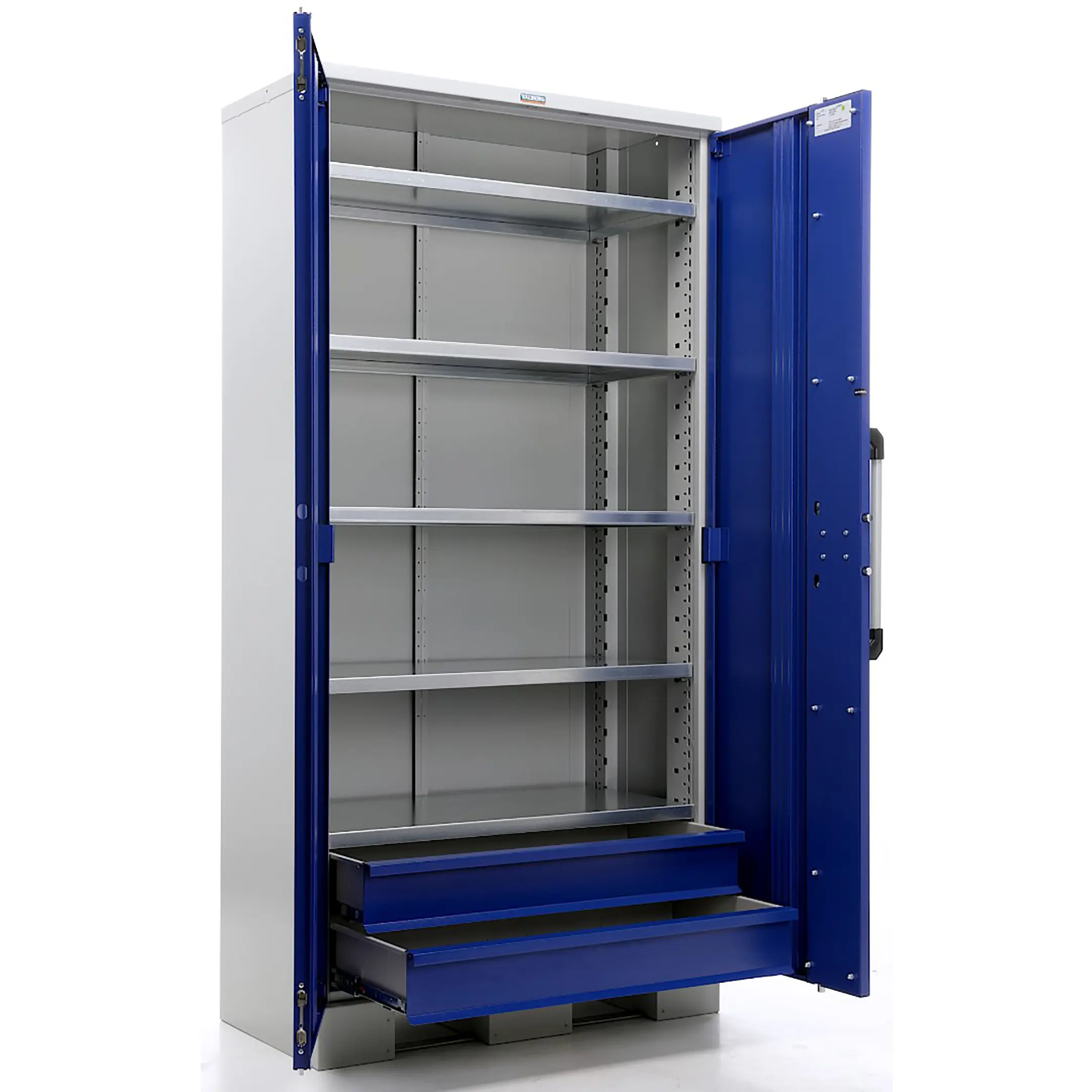 - Мобильность и транспортабельность под полной нагрузкой — ключевая особенность модели — наличие прочных колес (обычно два из них с тормозом) и ручек для перемещения. Это позволяет легко перевозить даже полностью загруженный тяжелым инструментом шкаф в пределах цеха, между объектами или на стройплощадке, превращая его в мобильную мастерскую или сервисную тележку.