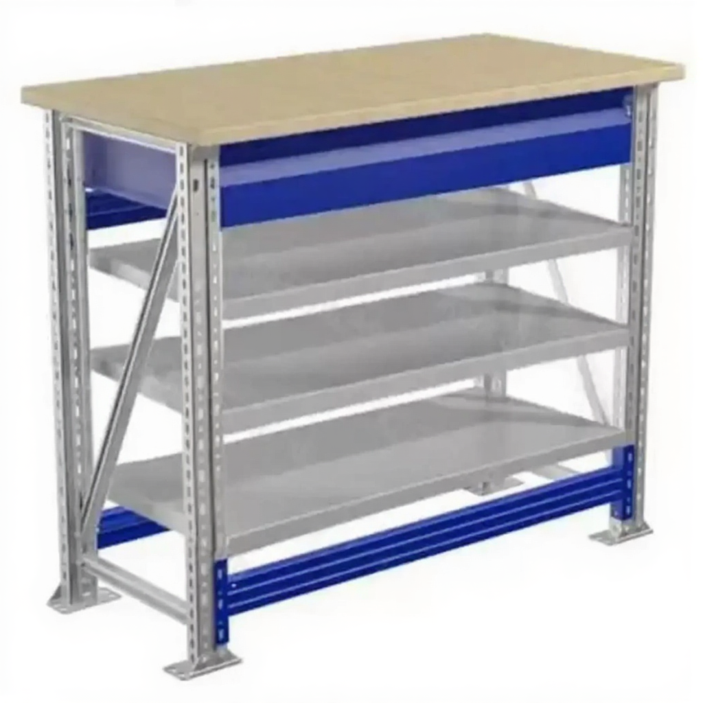 - Компактные размеры — столешница 1000х500 мм позволяет разместить верстак даже в небольших помещениях.