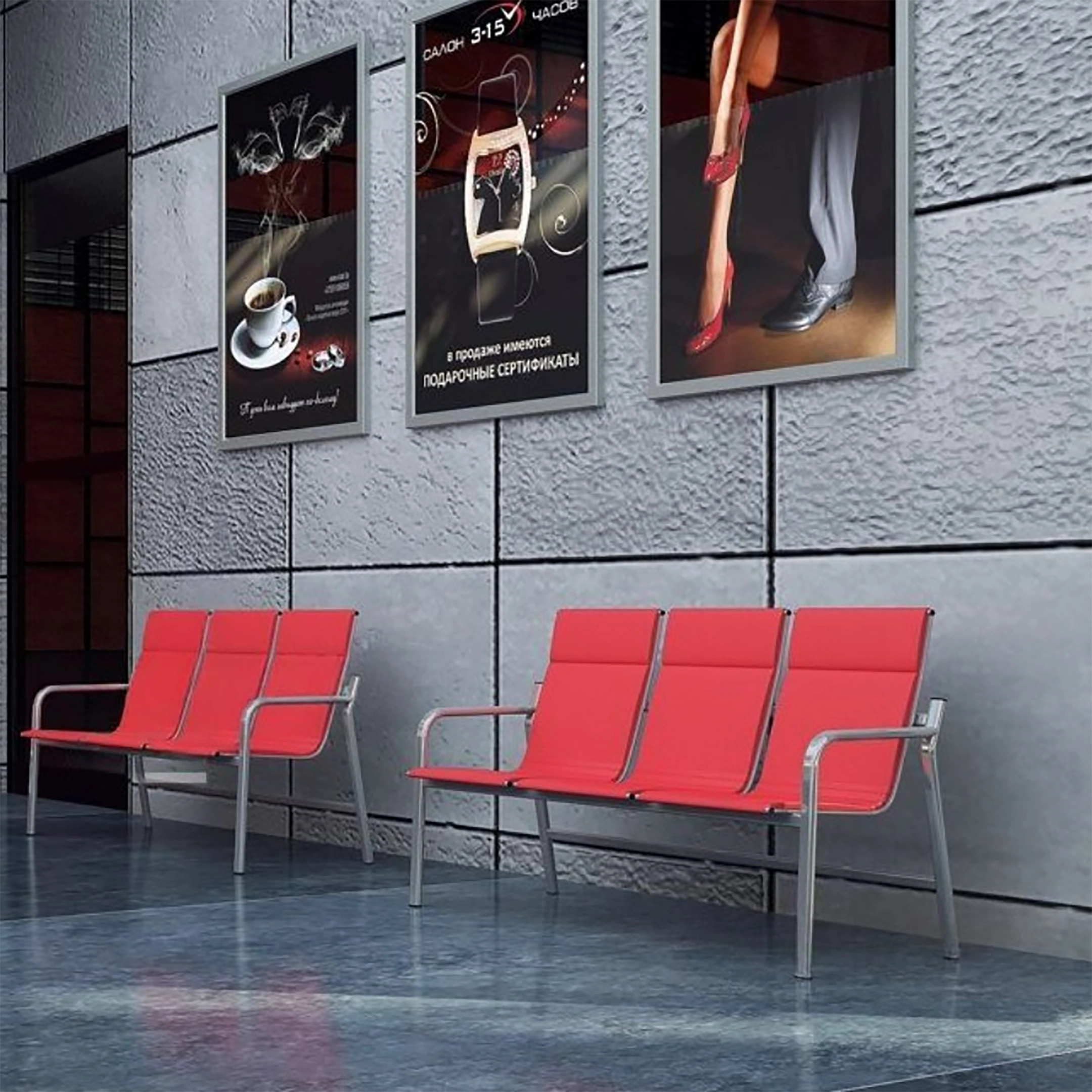 Многоместная секция предназначена для эксплуатации в зонах ожидания общественных мест с большой проходимостью: вокзалах, аэропортах, холлах административных зданий и пр.