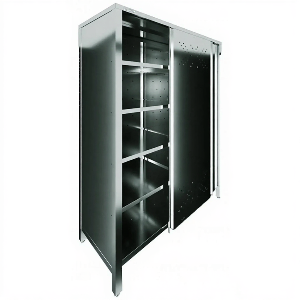 - Надежная защита содержимого — закрытый металлический корпус с дверцами обеспечивает полную защиту хранящихся предметов от пыли, влаги, посторонних запахов и несанкционированного доступа. Это гарантирует сохранность имущества и соблюдение санитарных норм на предприятиях общественного питания и производства.