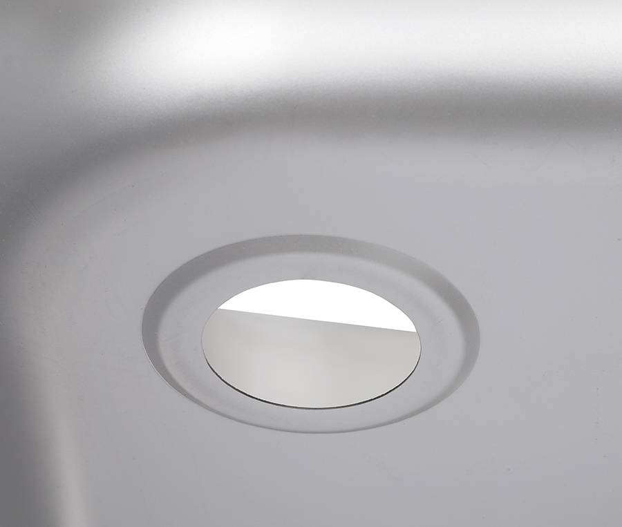 Сливное отверстие в центре мойки. Диаметр сливного отверстия 50 мм.