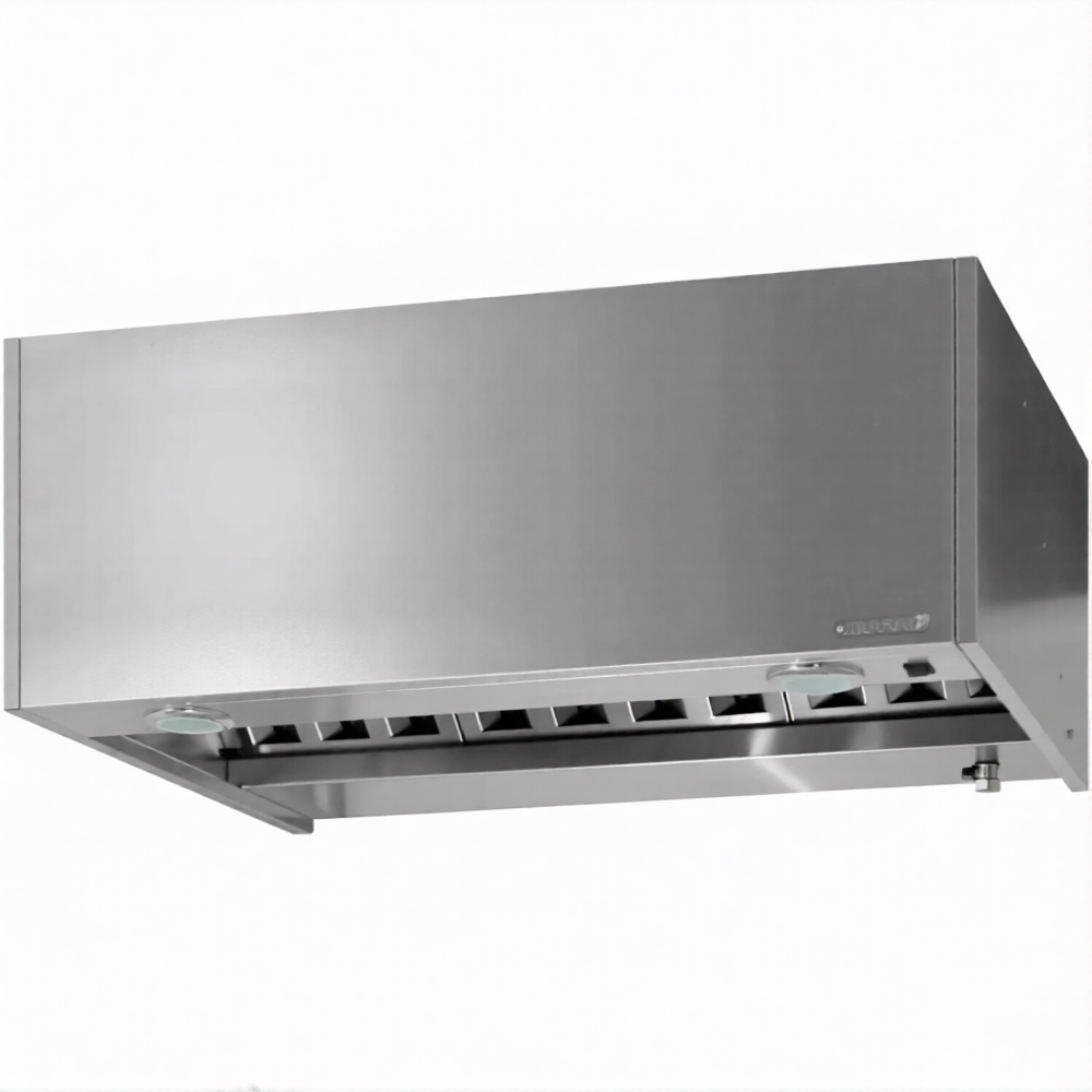 Зонт вытяжной универсальный ЗВУб 400х600х1000 «Base» (к-т светильников) используется на профессиональной кухне для повышения производительности общей системы вентиляции, удаления водяного пара из воздуха и более эффективного жироулавливания.