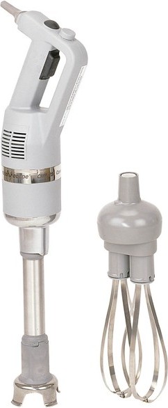 Миксер ROBOT COUPE CMP 300 Combi оснащен системой саморегулирования скорости. Заданная скорость фиксируется и остается постоянной. Данная модель миксера имеет сменные насадки. Венчик позволяет взбивать и перемешивать продукт, а блендер интенсивно измельчать его. Поэтому он отлично подойдет для приготовления различных блюд, теста для выпечки, а также для взбивания белков, сливок, кремов, приготовления муссов, суфле и творожных масс с густой консистенцией. Кроме того, функция постепенного ускорения вращения ножа позволяет выбрать оптимальный режим, предотвращая разбрызгивание продукта.