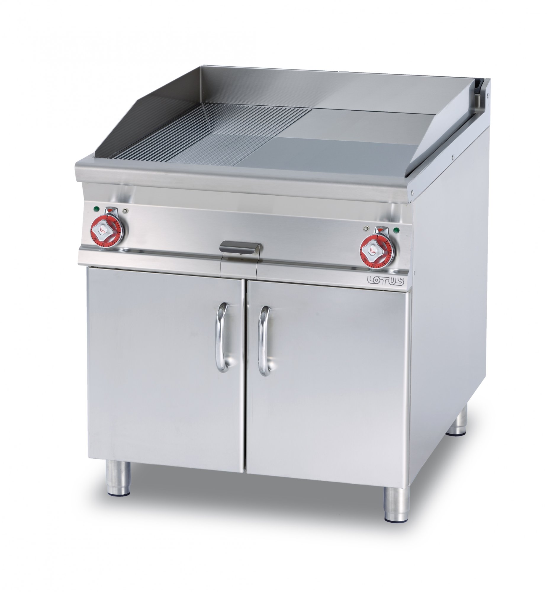Жарочная поверхность LOTUS FTLR-98ET гладкая/рифленая (серия 90) — это профессиональное оборудование итальянского производителя LOTUS для предприятий общественного питания, предназначенное для приготовления сочных стейков, жареной рыбы, нежного филе, зажаристых сосисок и других блюд, где необходим прямой контакт с горячей поверхностью.