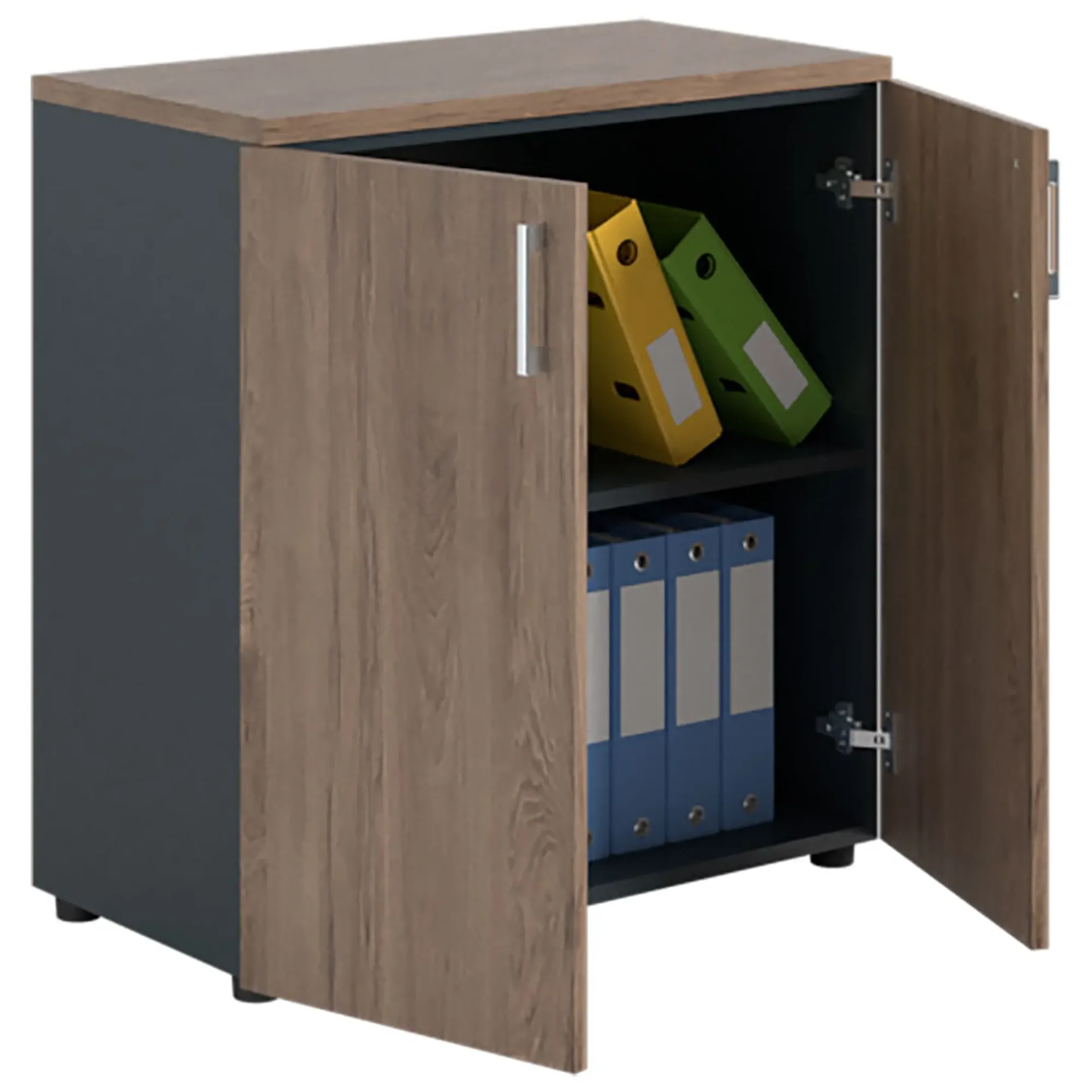 Шкаф NW 0880 закрытый темный орех/антрацит предназначен для хранения.