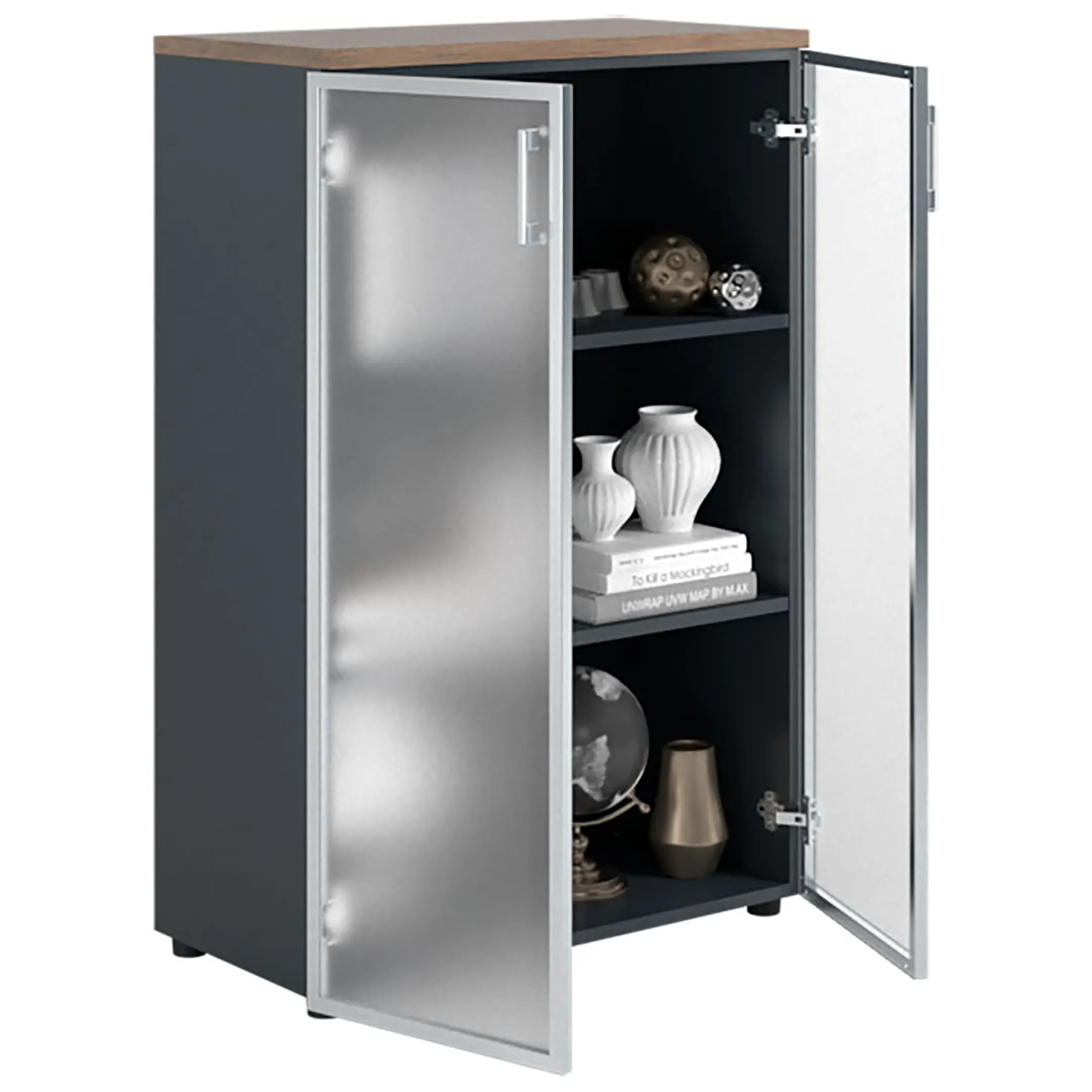 Шкаф NW 1280/2G со стеклом темный орех/антрацит