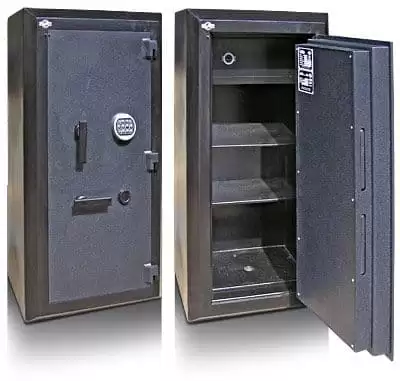 корпус сейфа имеет усиленный двухслойный сварной стальной каркас, выполненный из листовой стали и заполненный специальным бетоном;