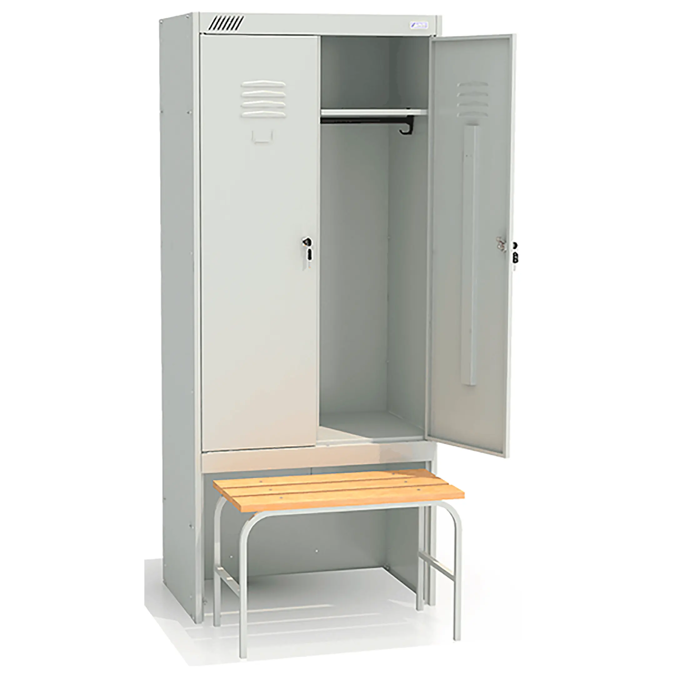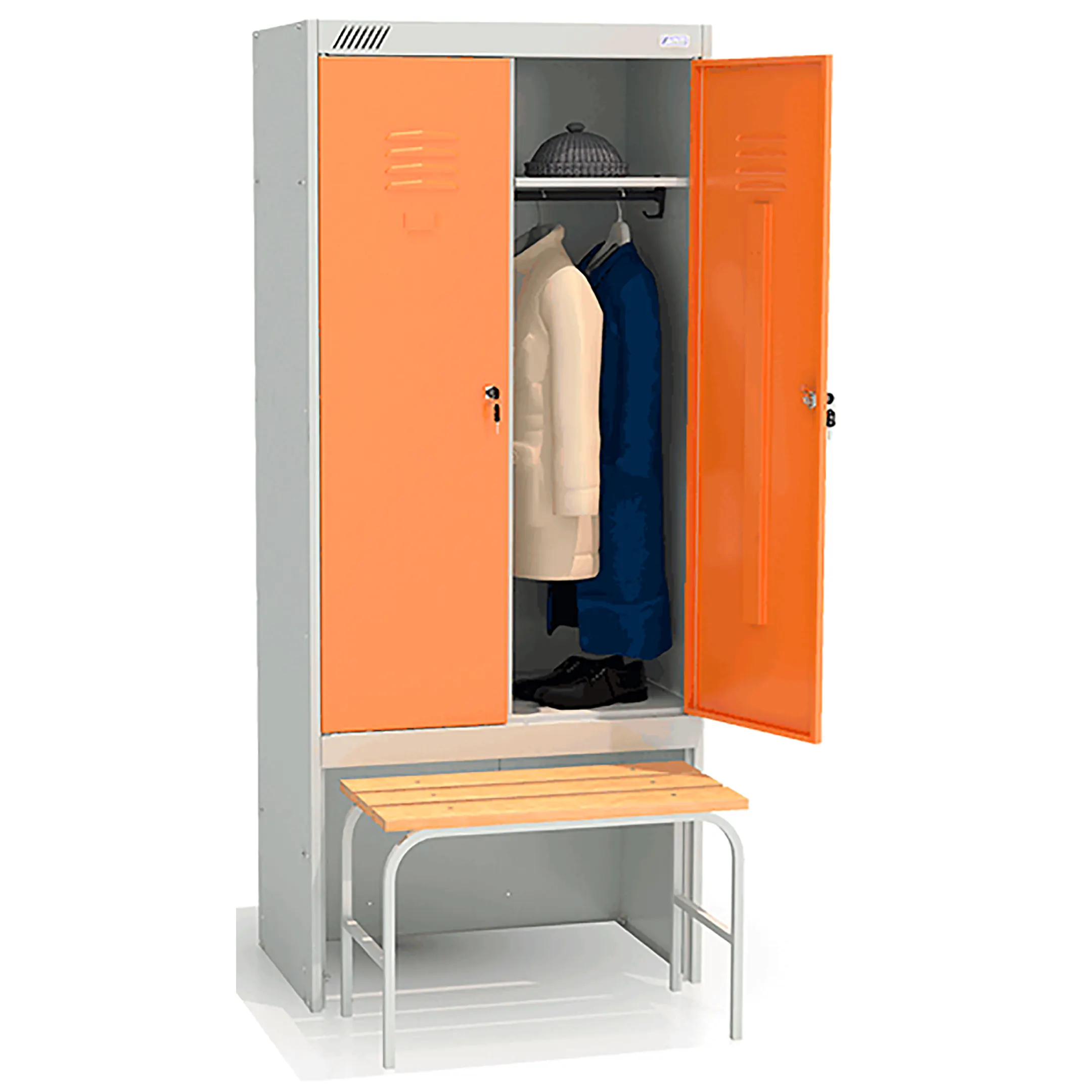 - комплектуется двумя замками повышенной секретности, двумя полками под головные уборы, двумя перекладинами, четырьмя крючками;