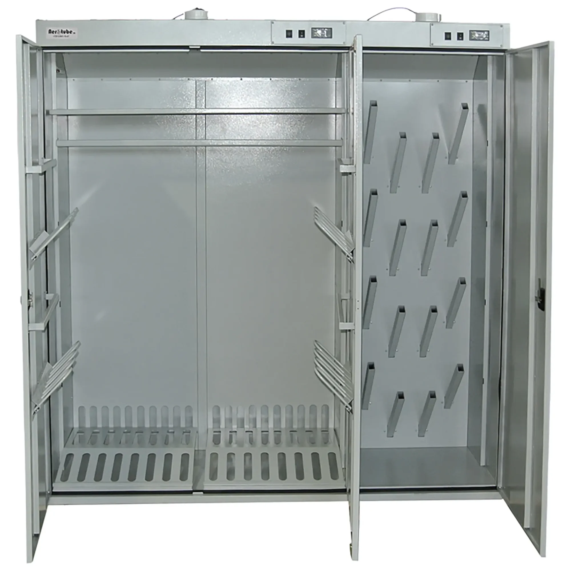 - Универсальность и многофункциональность — модель предназначена для одновременной или раздельной сушки одежды (спецодежды, халатов, спортивной формы) и обуви. Комбинированная внутренняя организация позволяет оптимально использовать пространство под различные типы изделий.